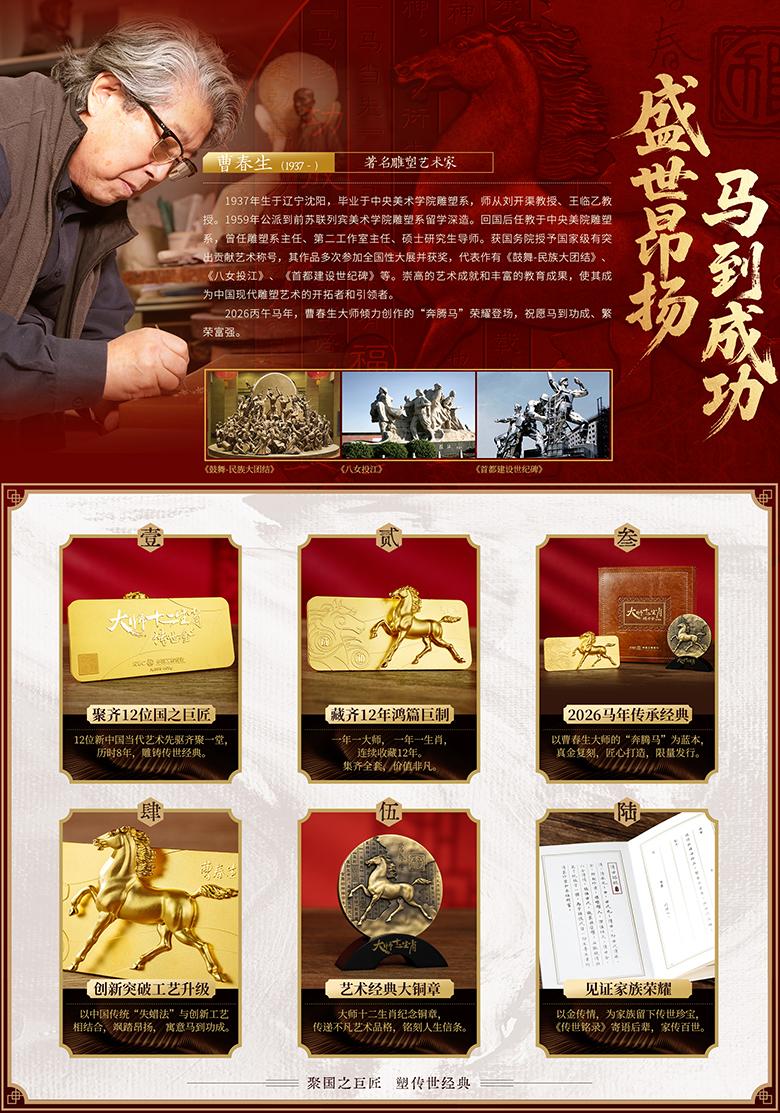 中国工商银行联袂雕塑大师曹春生,打造2026马年生肖传世巨作天龙配资,“大师十二生肖传世金·奔腾马”,